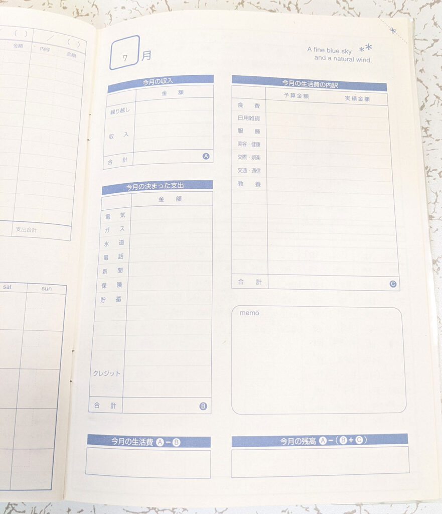 先ほどお話しした通り、私が初めて家計簿を付けようとしたのは100円ショップで購入した小さくてかわいい家計簿ノートでした。