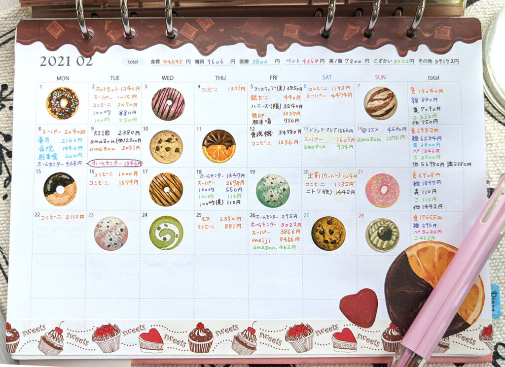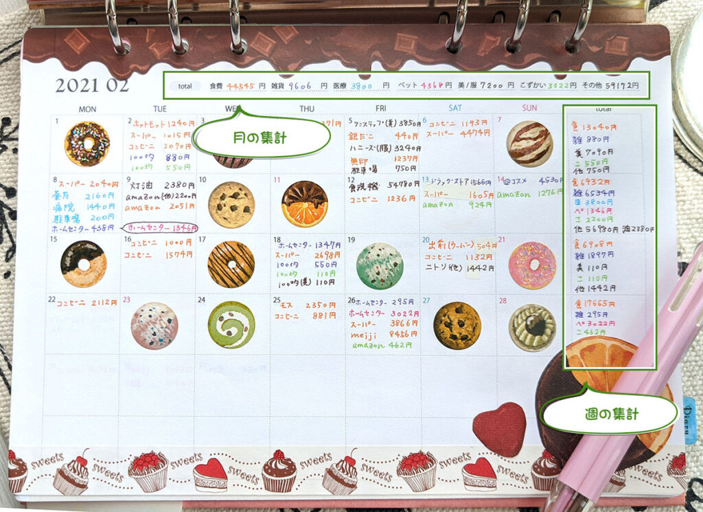 カレンダー家計簿の付け方 集計編